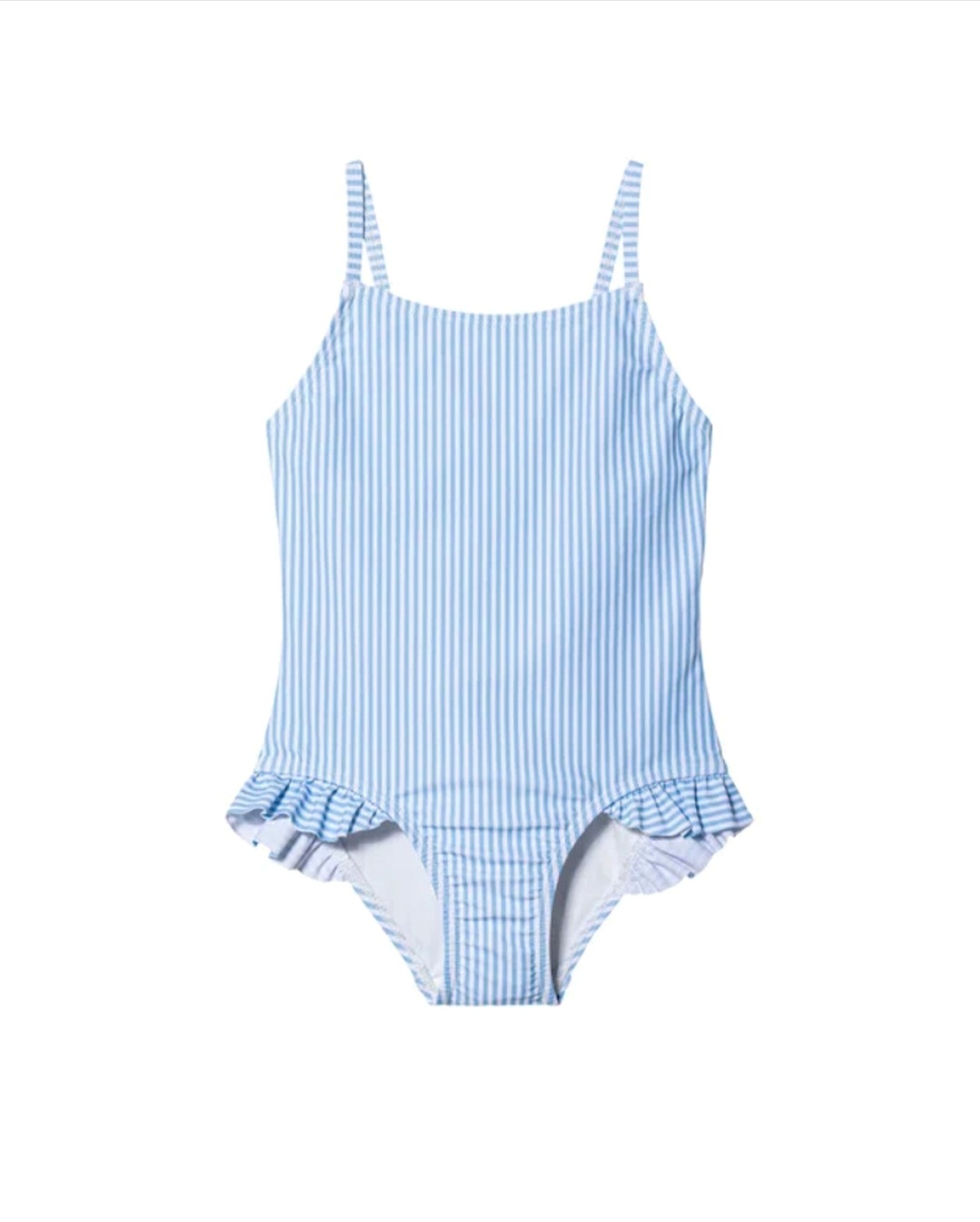 مایو دو تیکه بیکینی بچگانه راه راه بنفش