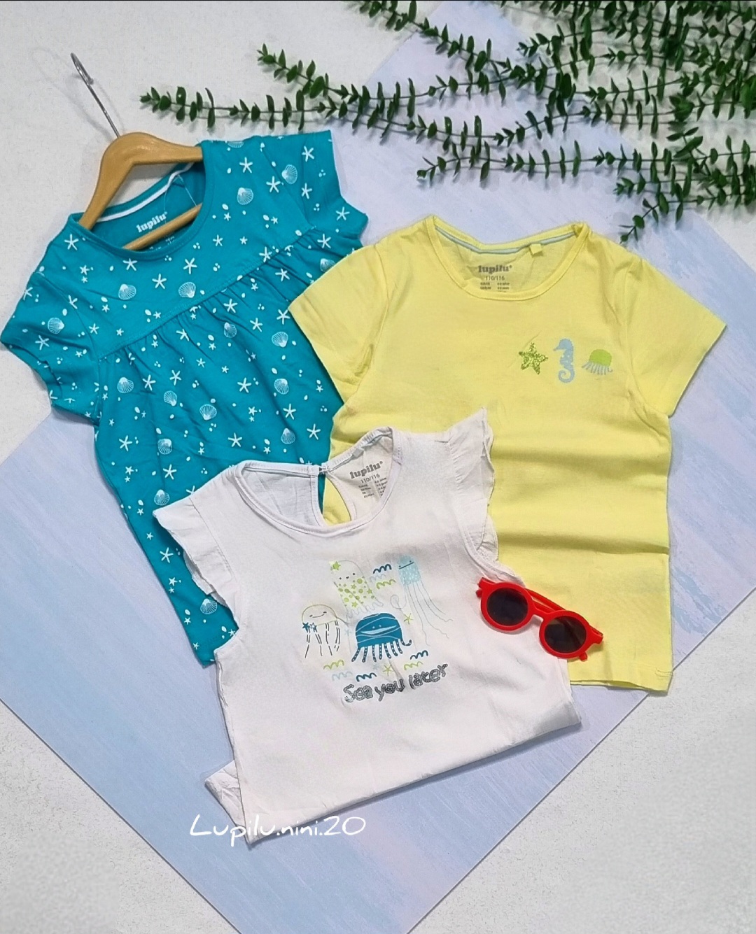 پک ۳ عددی تیشرت دخترانه نخ پنبه خالص /۳ طرح رنگ متفاوت در یک پک سایز بندی: ۸۶/۹۲ سن ۱_۲ سال : عرض ۳۰ قد ۳۹ ۱۱۰/۱۱۶ سن ۴_۶سال: عرض ۳۳ قد ۴۵ ❌️۱ سانت خطای اندازه گیری در نظر بگیرید❌️