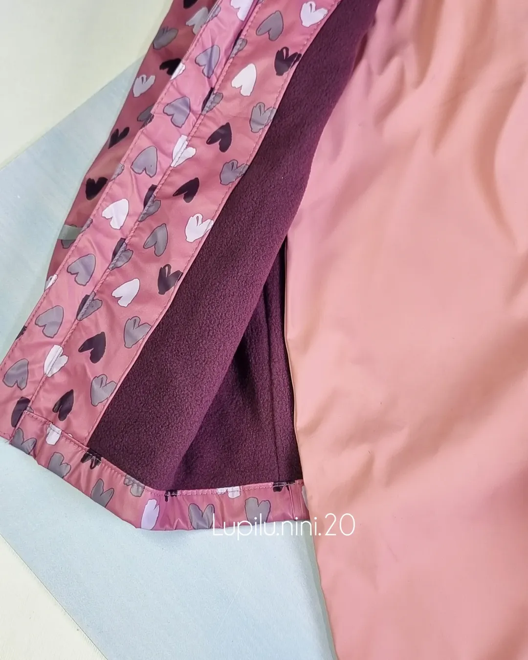 ست دو تکه شلوار پیشبندی و کاپشن بارانی قلبی