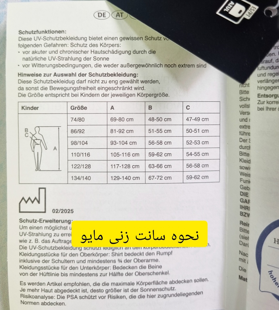 به جدول سایز بندی دقت کنید