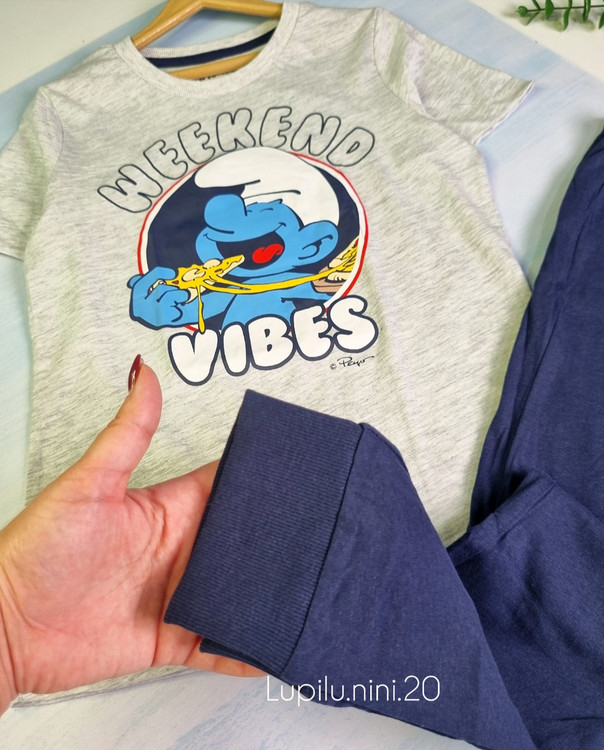 ست راحتی تیشرت شلوار اسمورف اروپایی