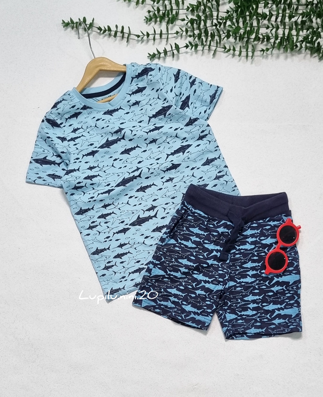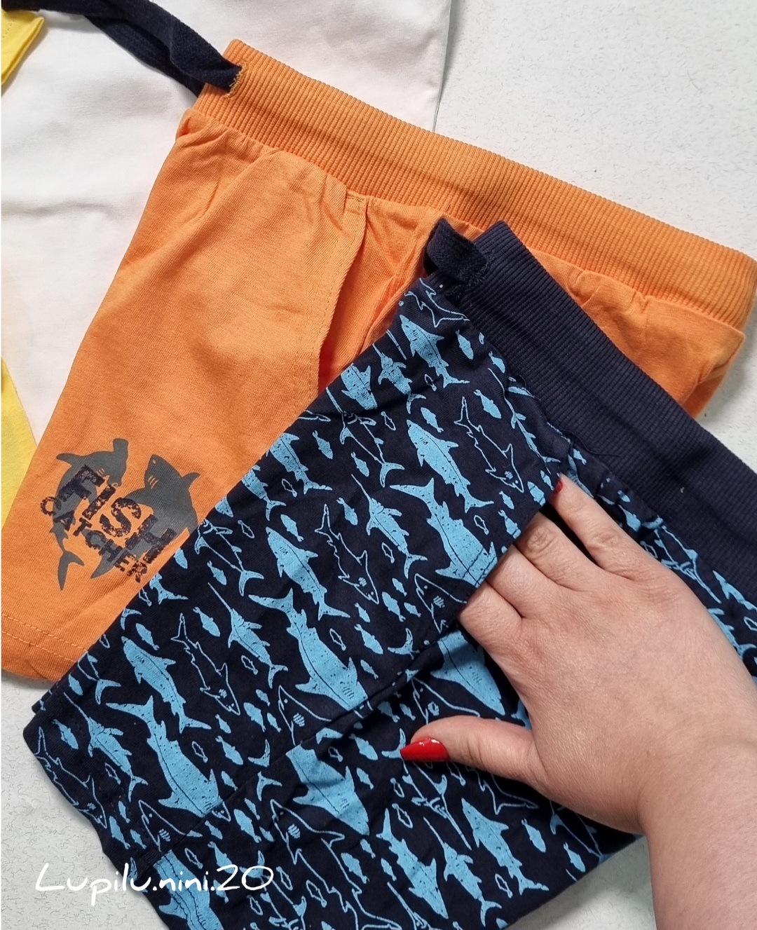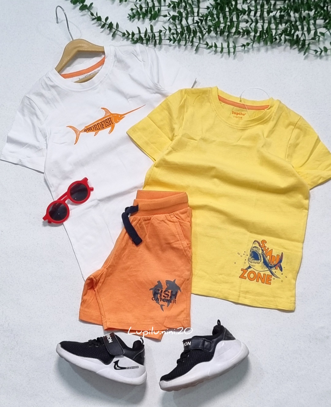 ست ۵ تیکه تیشرت شلوارک کوسه زرد نارنجی