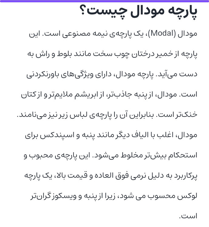 توضیحات پارچه مودال در اسلایدهای بعد است