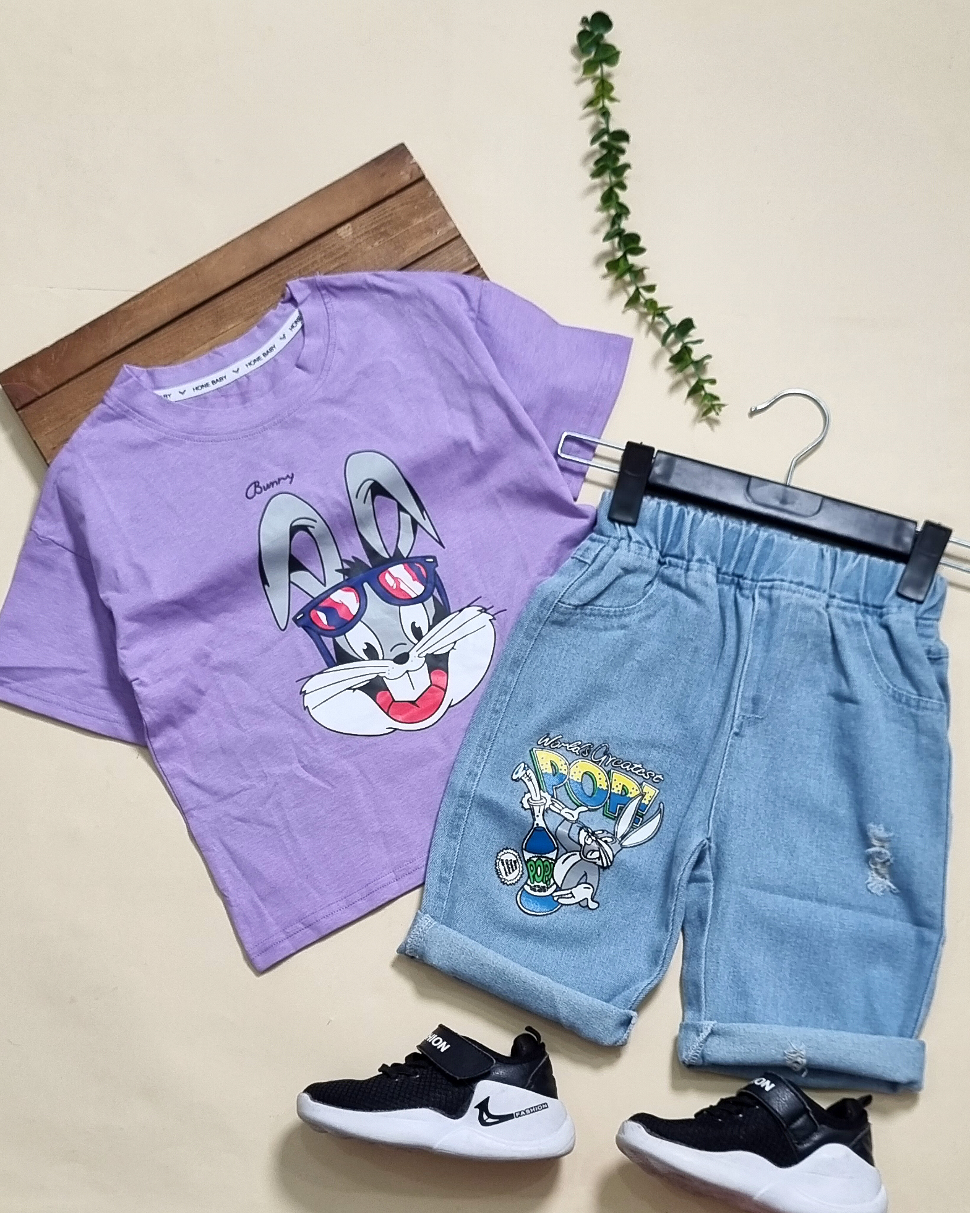 جنس: بلوز نخ پنبه/شلوارک جین واقعی