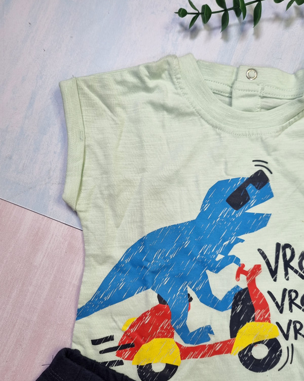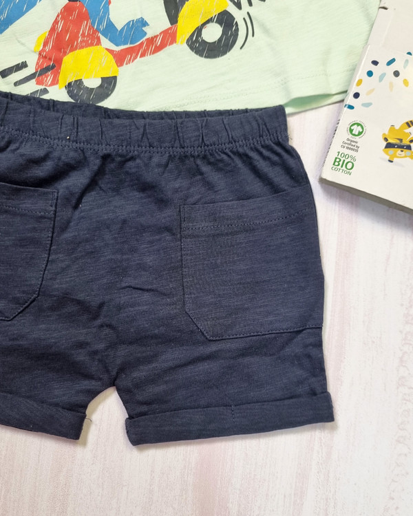 آستین و پاچه شورتک پاکتی و شیک است و شورتک ۲ جیب جلو دارد