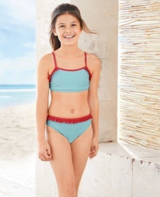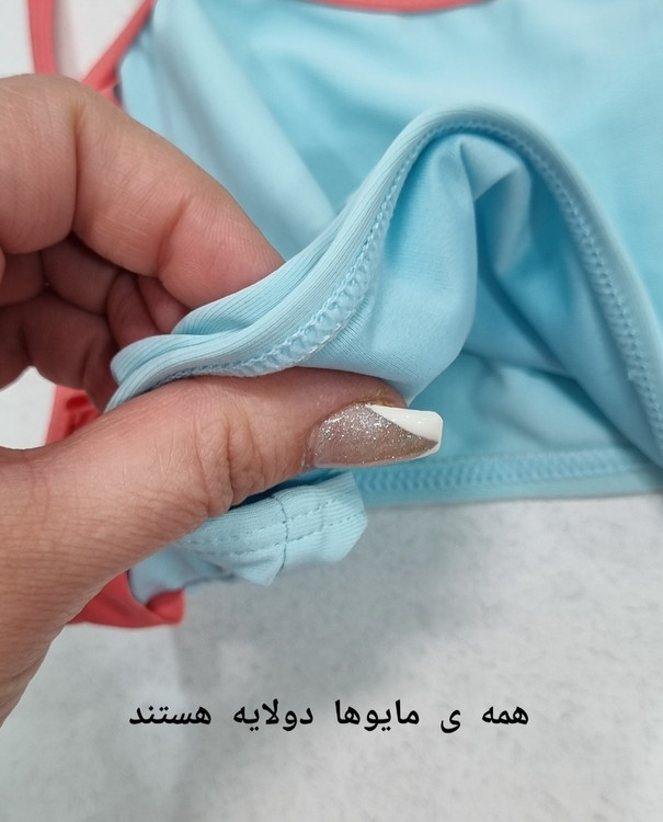 مایو دو تیکه دخترانه و سایز بزرگش برای بانوان سایز ۳۶ مناسب است